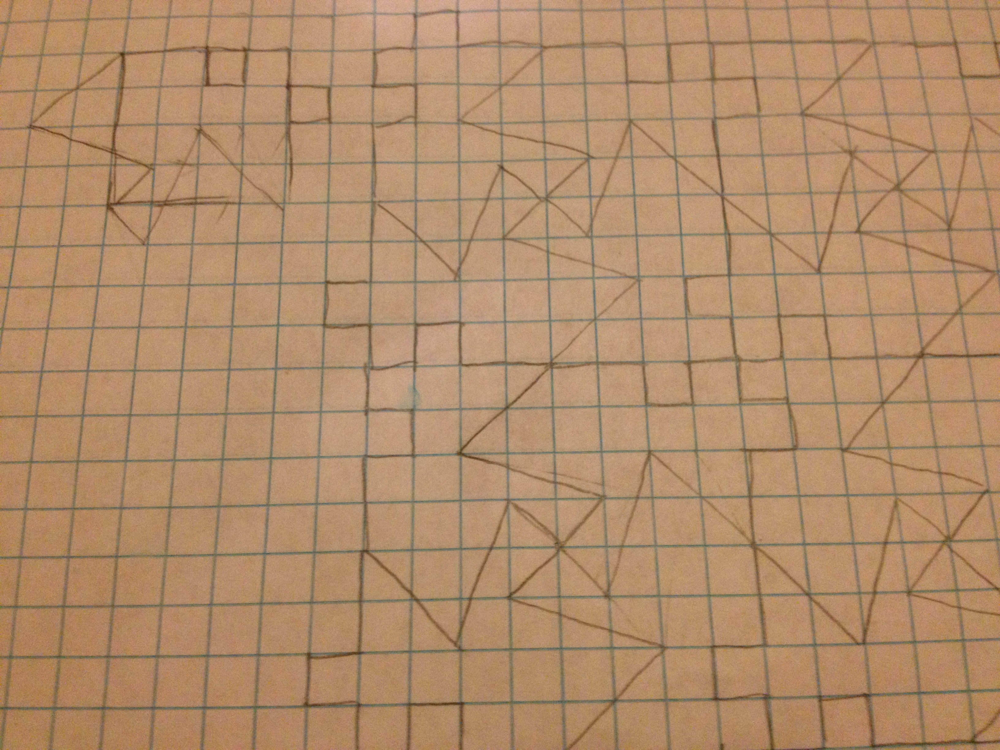 Then, I thought I should take a chance and tessellate some pavement without the aid of the grid. So, I went to work on a stencil.[4]